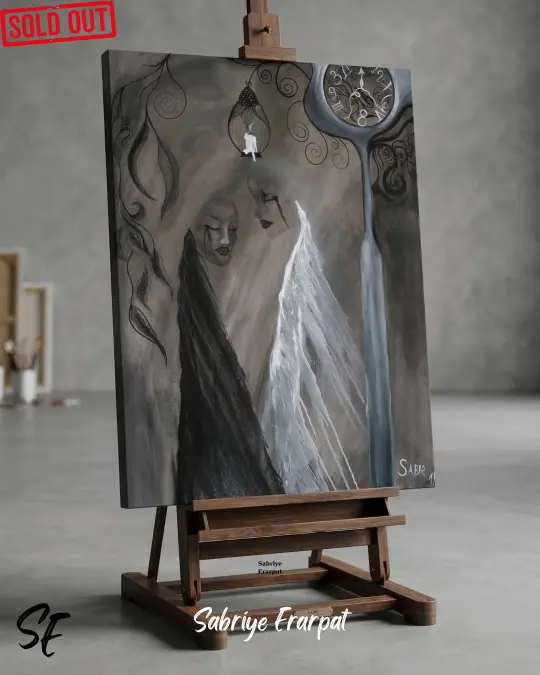 Bir sanat eserinden öte, insan zihninin karanlık ve aydınlık dehlizlerine açılan bir portal. Sabriye Erarpat’ın fırçasından dökülen bu orijinal sürrealist tablo, zamanın acımasız akışı karşısında insanın içsel tutsaklığını ve bekleyişini resmediyor. Tuvalin sağ alt köşesindeki “SABİR” imzası, eserin yaratım sürecindeki ruhsal çileyi ve felsefi demlenme sürecini adeta sessiz bir çığlık gibi izleyiciye fısıldıyor.